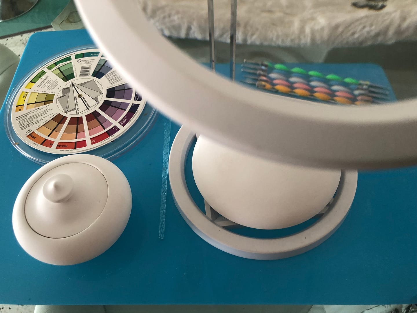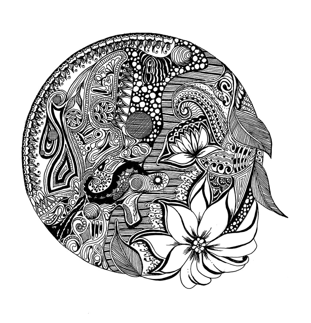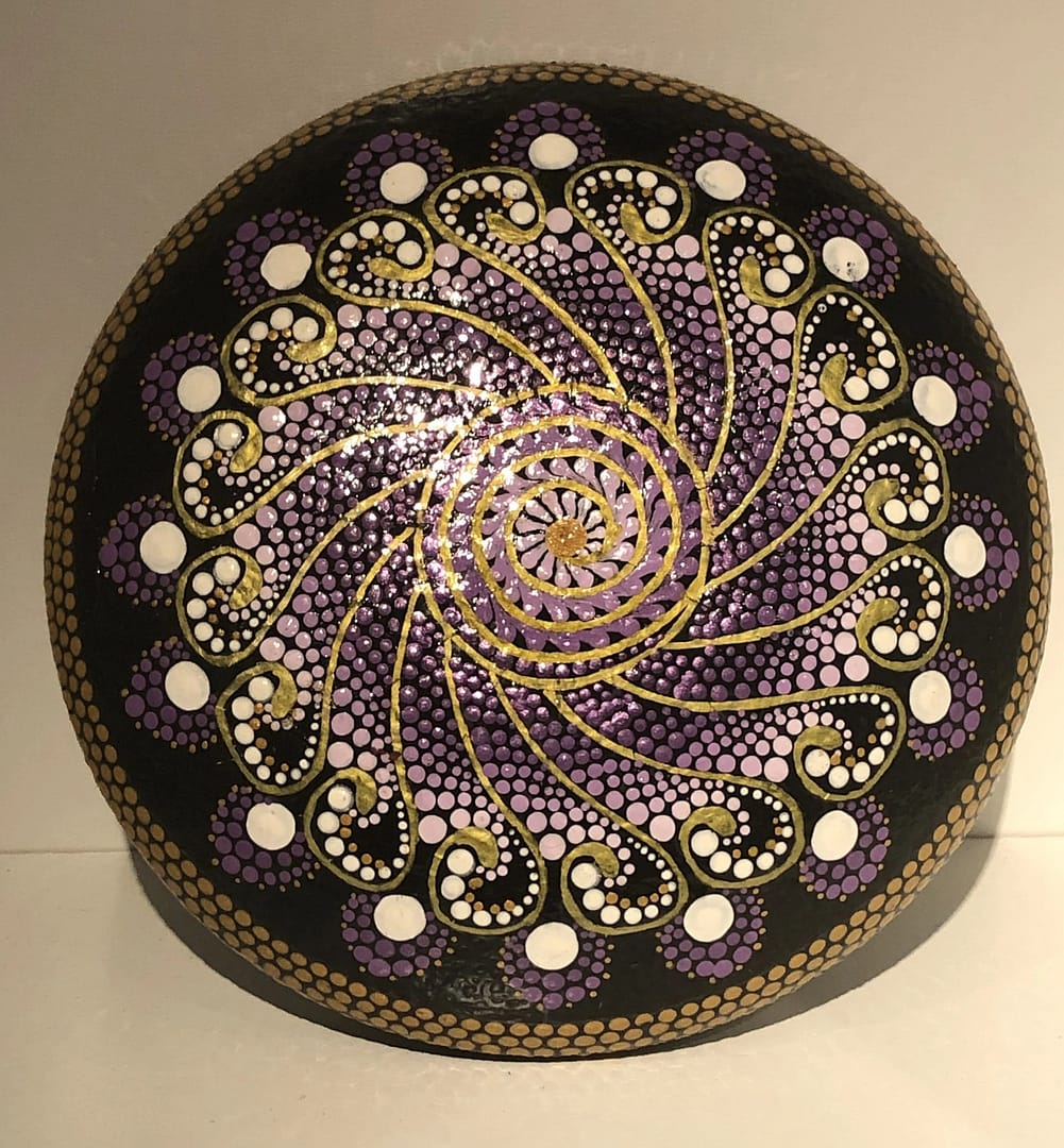 I focus on dot painting and line art, which is usually hard to reproduce, thus creating representations that become art and design. The tools are objects cast from silicone molds, using acrylic paints and sealed with resin. Other tools are black and colored inks on white and tinted paper, capturing extremely delicate moments. This process illuminates elements which can be found in sacred geometry.